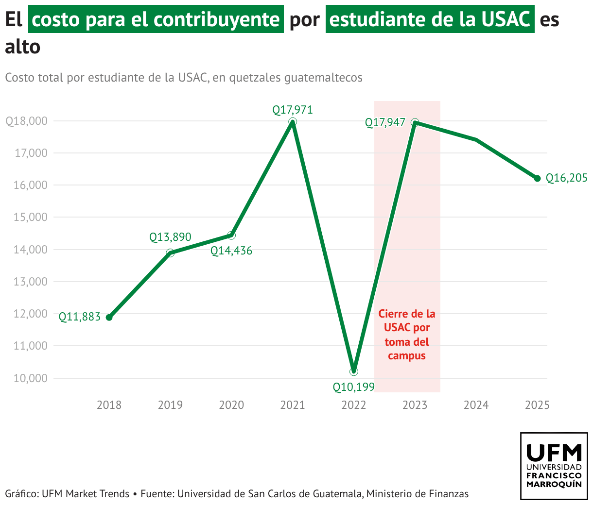 El costo para el contribuyente por estudiante de la USAC es alto