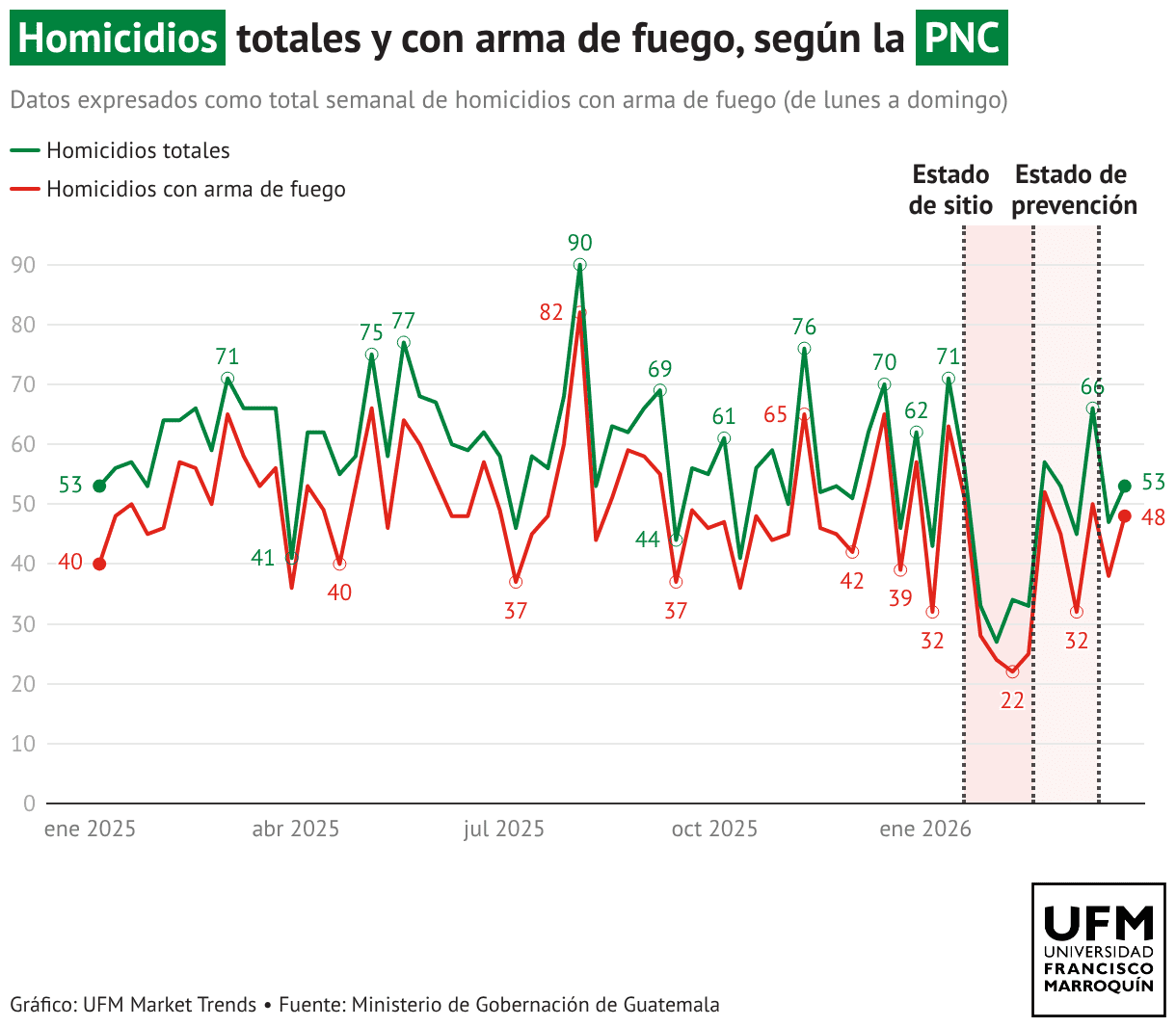 Homicidios totales y con arma de fuego, según la PNC
