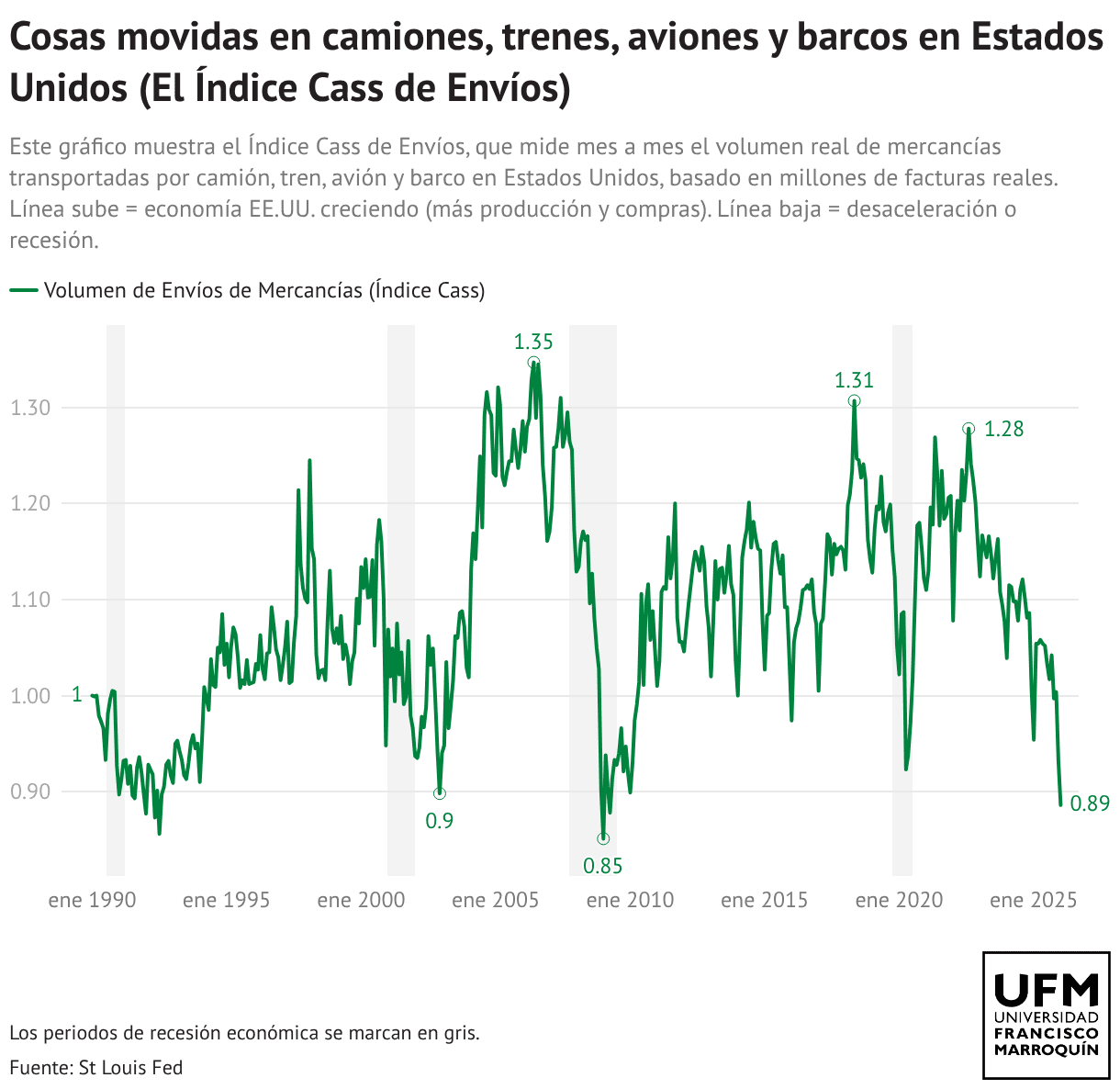 Cosas movidas en camiones, trenes, aviones y barcos en Estados Unidos (El Índice Cass de Envíos)