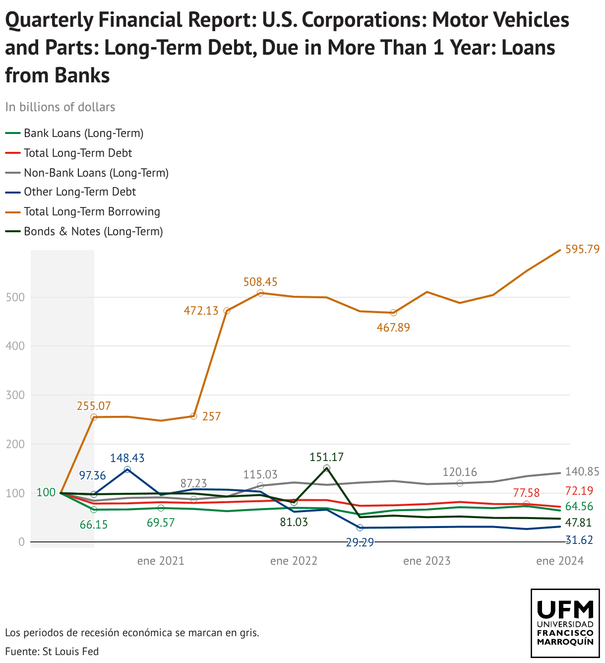 Quarterly Financial Report: U.S. Corporations: Motor Vehicles and Parts: Long-Term Debt, Due in More Than 1 Year: Loans from Banks