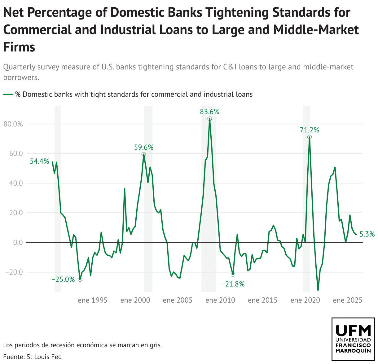 Net Percentage of Domestic Banks Tightening Standards for Commercial and Industrial Loans to Large and Middle-Market Firms