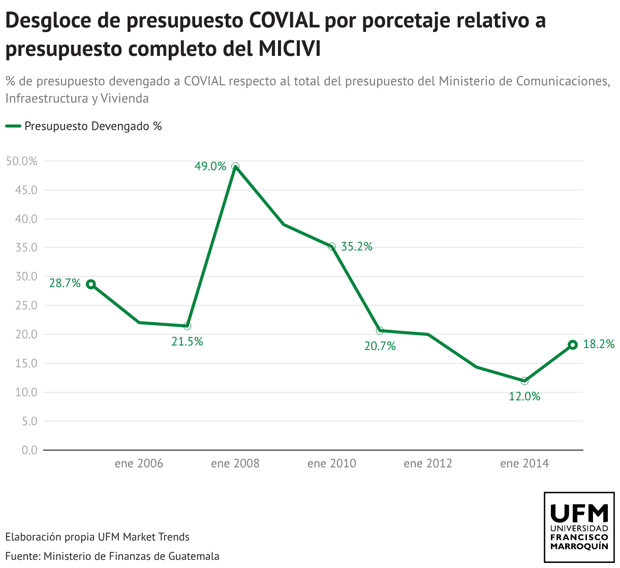Presupuesto COVIAL devengado del Ministerio de Comunicaciones, Infraestructura y Vivienda