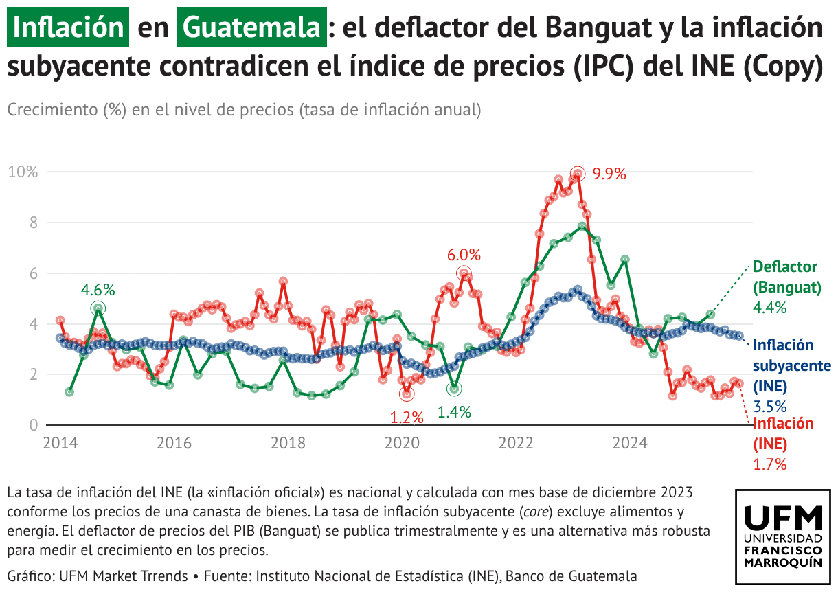 Inflación en Guatemala: el deflactor del Banguat y la inflación subyacente contradicen el índice de precios (IPC) del INE