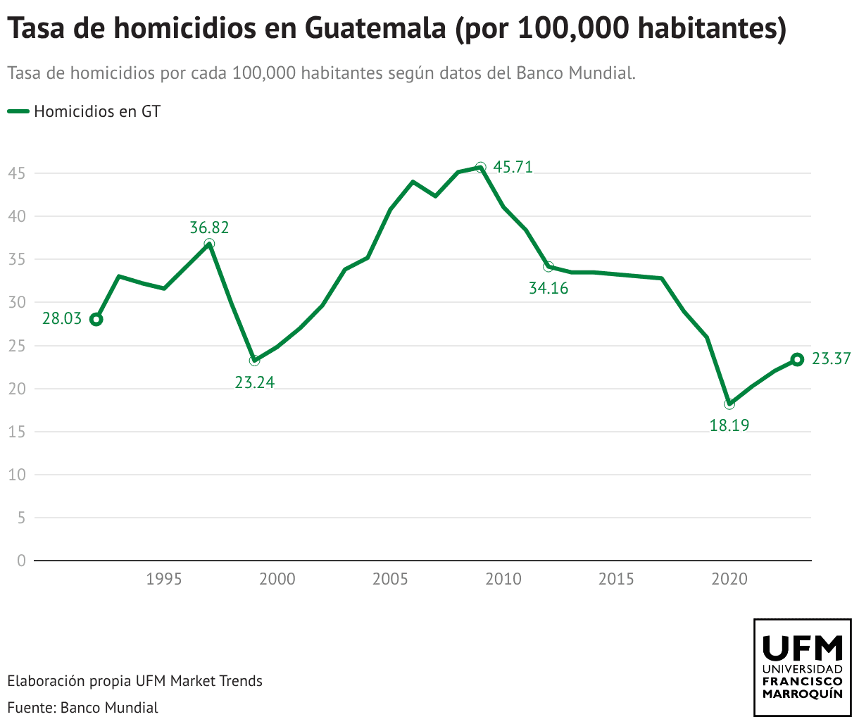 Tasa de homicidios en Guatemala (por 100,000 habitantes)