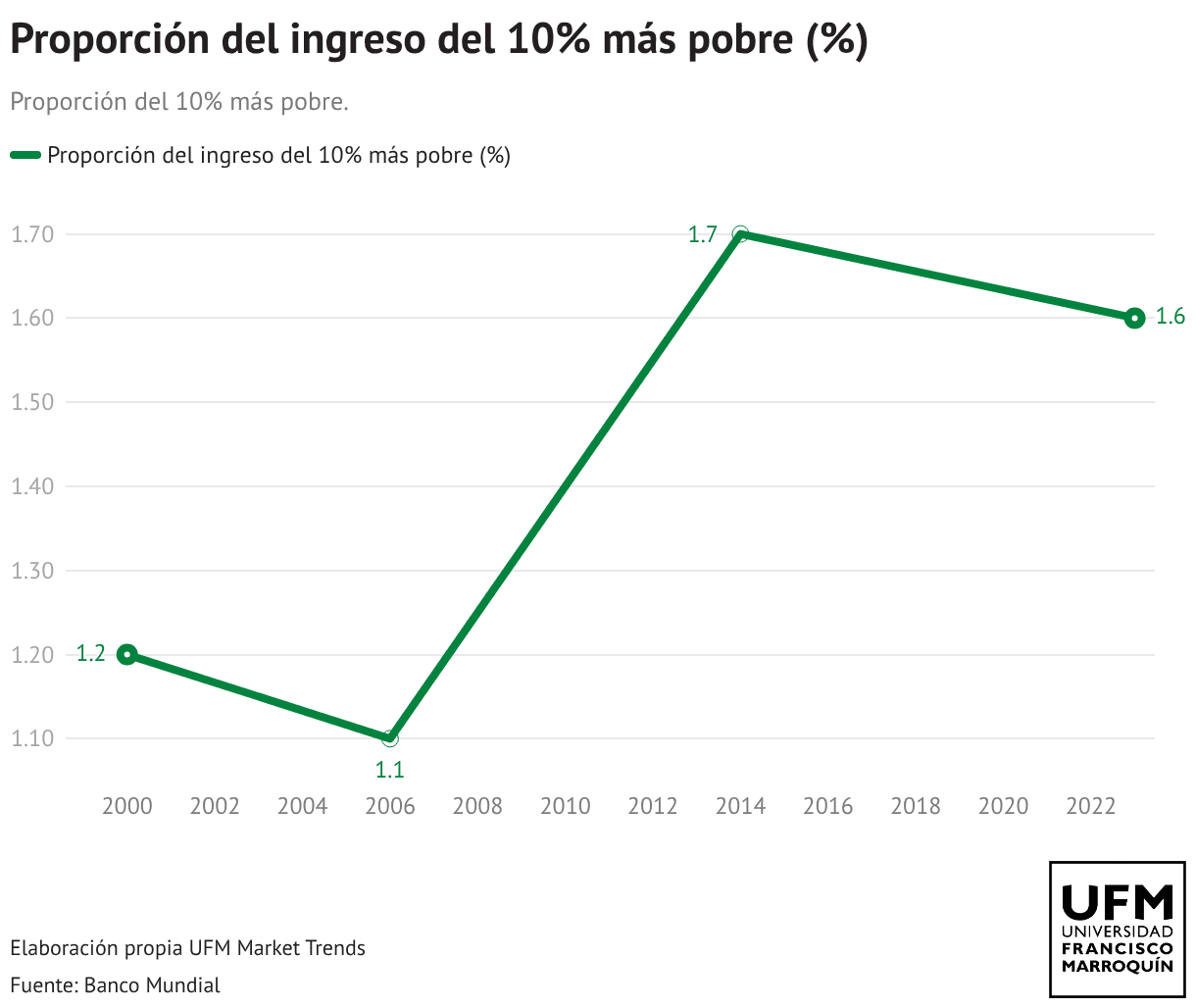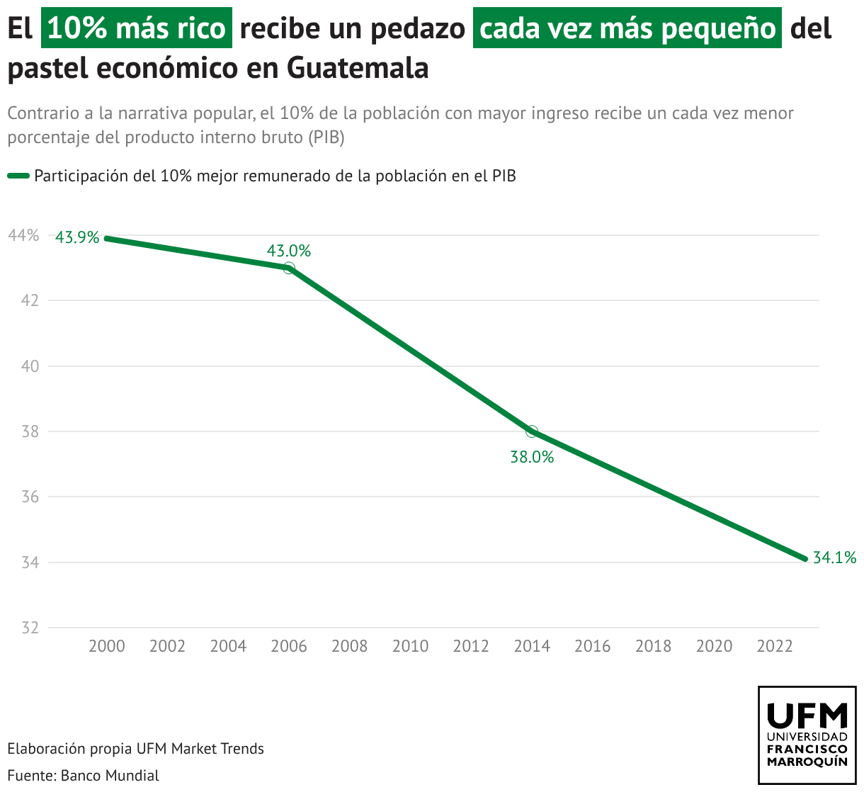 El 10% más rico recibe un pedazo cada vez más pequeño del pastel económico en Guatemala
